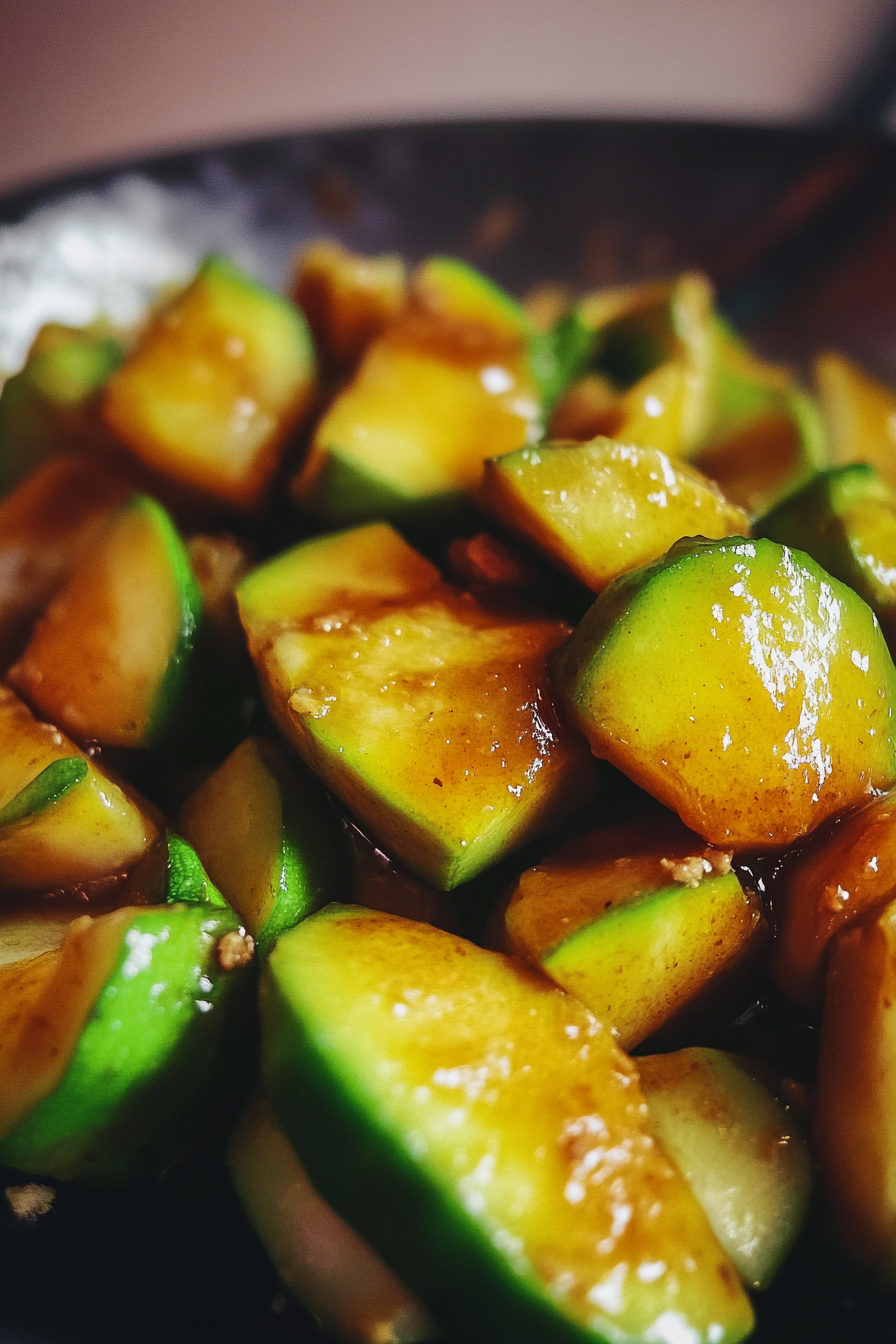 - Prepare the zucchini: Peel the zucchini and cut it into bite-sized diagonal chunks.