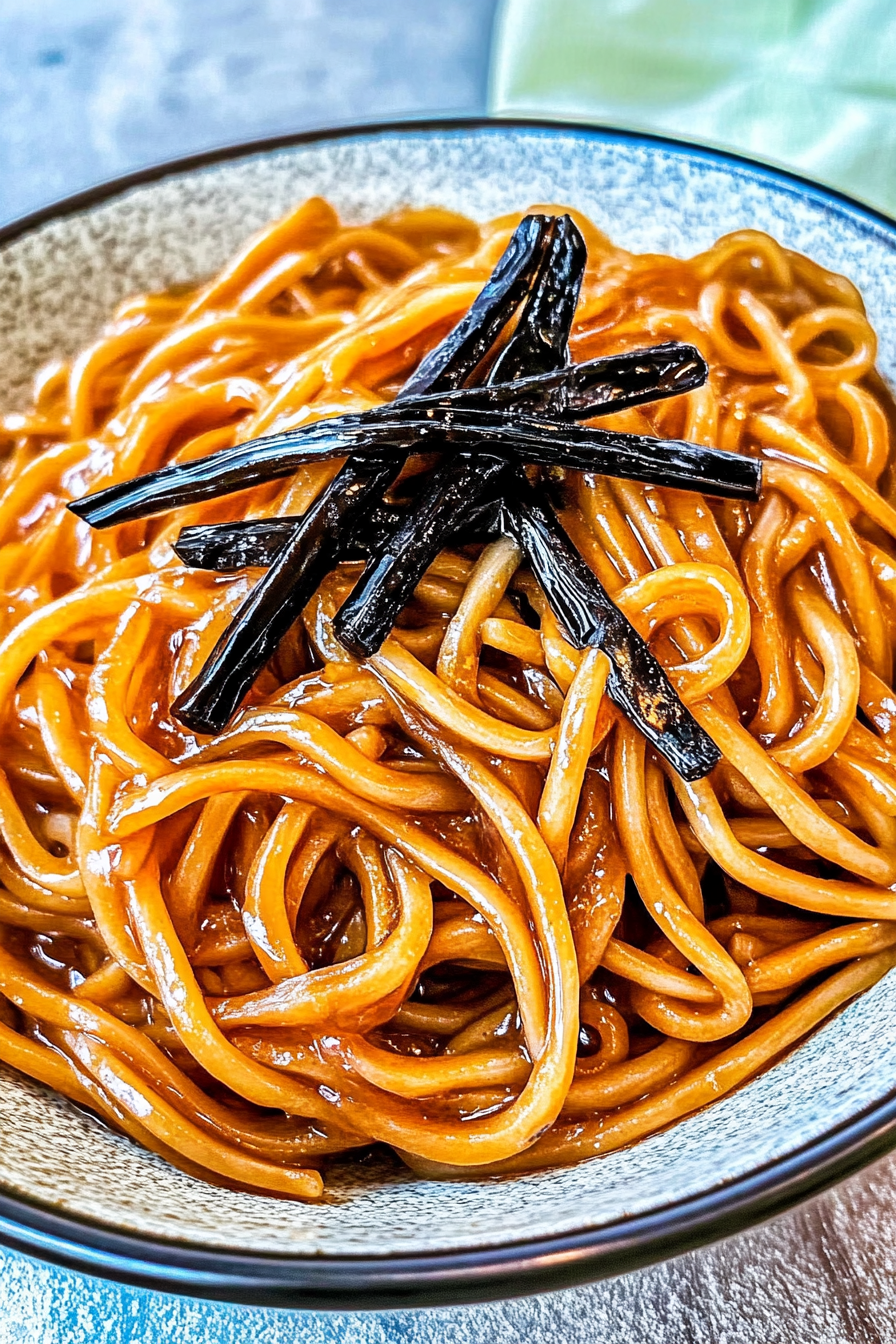 Reduce the heat to low and simmer the scallion oil for 1 minute, then remove from the heat. - Cook the Noodles: