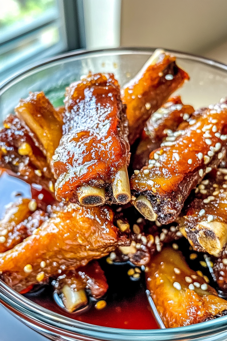 - Plate the ribs and sprinkle with sesame seeds.