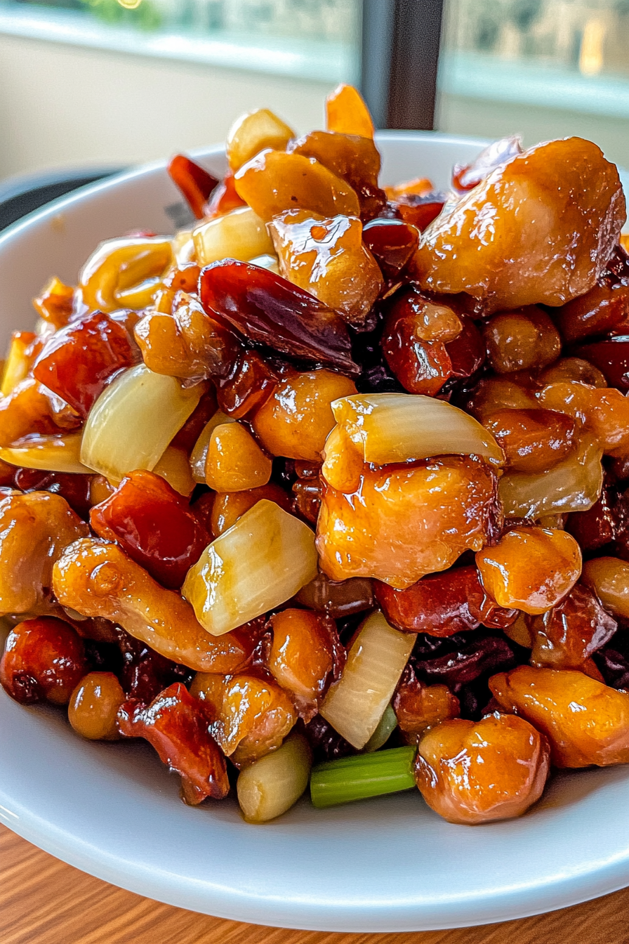 - Combine chicken and sauce: Return the chicken to the pan and stir-fry briefly. Pour the prepared sauce around the edge of the pan and quickly toss everything together over high heat until well combined.